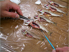 ・同じ飼育池の魚の場合は 1 つのビニール袋に