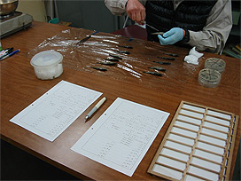 ・発送 (または持ち込み) 時は、保冷箱に氷か保冷材を入れる。検体を
