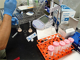 そこで当研究所では、大型マス類の高鮮度保持のために最適な活魚輸送方法や絞め方、氷冷方法について岐阜大学大学院連合農学研究科と共同研究を行いました。