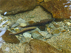産卵の適地がない川では、放流しても効果が望めない。 |