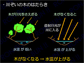 スライドの一例 (川沿いの森林の機能について)