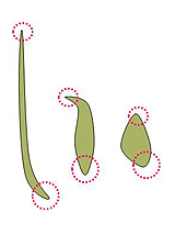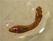 注意 3 : カゲロウは えらがちぎれやすく、腹に