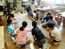 「魚離れ」 が進んでいるため、学校等と連携した教育普及活動が求められています。当研究所では、そうした教育普及活動を促進するため、アマゴなど渓流魚を題材に、釣りのルールについて解説する教材・プログラム 「魚つりのはなし」 を考案・製作しました。
