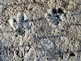 下呂支所の飼育池の近くでイタチらしき足跡が見つかりま