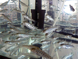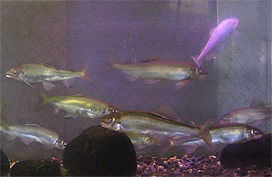 本所の見学通路では、2008年の秋生まれのアユを水槽で展示中です。アユの寿命は