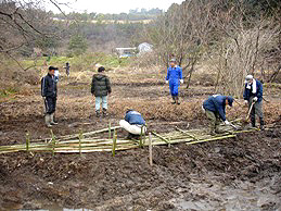 (関連記事 : 2月 21日)。前回作成したビオトープの細かな手直しを行いました。