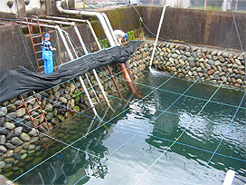 下呂支所の実験水路に試験的に造成した人工産卵場