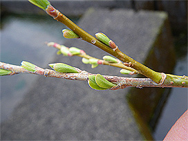 ヤナギ類は、川沿いの林でよく見られる樹種です。山間部の渓流の場合、川沿いの林は