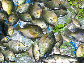 ため池で外来魚駆除