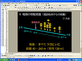 今回調査した渓流でも、アマゴの稚魚は発眼卵を埋設した地点の下流側