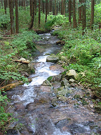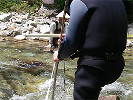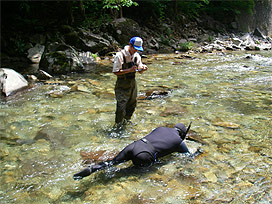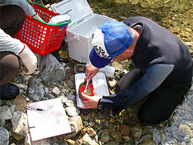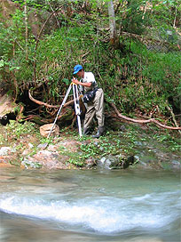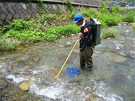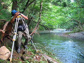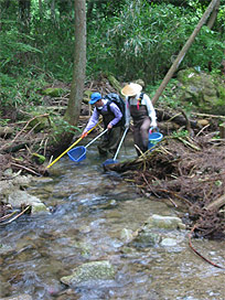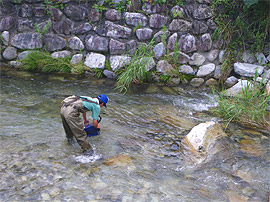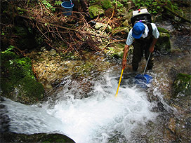 渓流で魚類調査
