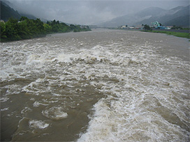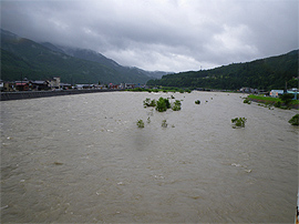 大雨で川が増水