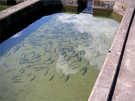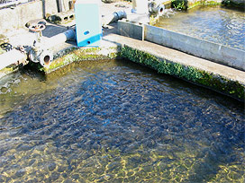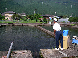 下呂市内の養殖業者 1 軒を訪れ、飼育池の環境条件を調べました。この養殖業者では、1