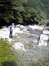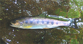 この渓流は河川規模が小さいものの、定着状況は特に良好でした。全長は平均