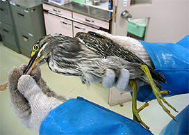 水槽には防鳥ネットがかぶせてあり、このササゴイがどこからどうやって侵入したのか、まったく不明です。放置しておくと飼育魚が食べられるばかりなので、わざわざネットを開けて外へ取り出し、叱ってから逃がしました。