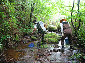 3 河川の計 8 地点で調査し、イワナ ・ヤマメ
