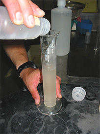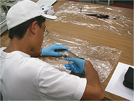 アユの餌になる付着藻類が 1 日でどのくらい増えるのか調査するため、石から付着藻類を採集しました。