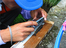 ヤマメの選別作業