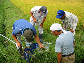 地元の市民や当研究所の職員が生物の採集に協力し、カワヨシノボリ