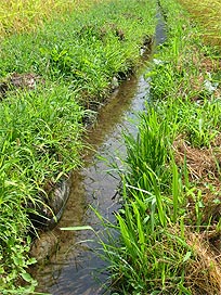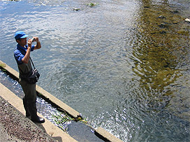 水路で生物調査