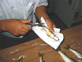 アユの測定作業