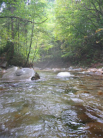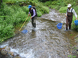 渓流で魚類調査