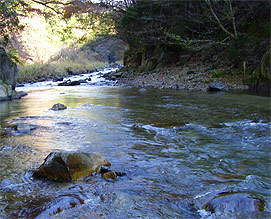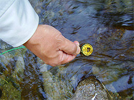 アユの試験放流を行った川に設置していた水温計を回収しました。