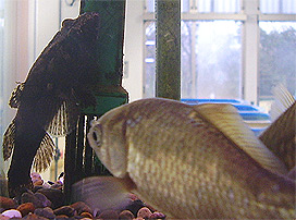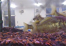 (名前はない)。今から 4 年ほど前にここに来ました。その頃、同じ水槽にいるギンブナ達をいじめていました。時が過ぎ、ギンブナ達は私より大きくなり、我が物顔で泳ぎ回り、私は居場所がありません。時には魚なのに立ってしまうことも