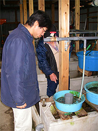 ここではカジカの飼育と平行して飼育施設の整備を行っており、しばらくして訪れる産卵期に向けて飼育機材の作製や設置などについてアドバイスをしました。