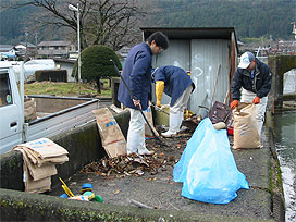 下呂支所では、敷地全体を巡回して、飼育池のスクリーンの掃除や給餌機への餌の補充などを行いました。