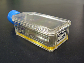(上の写真) の底面に付着して、2 分裂しながら増殖していくので、底面が培養細胞でいっぱいになると増殖を止め、培養液の交換をしないと、いずれ死滅します。そのため、通常