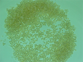 魚類に限らず、生物の細胞は、条件さえ整えば試験管内で培養が可能です。当研究所では、魚類の培養細胞を魚類ウイルス病の研究や検査に用いています。