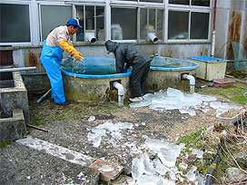 (検卵作業) を行いました。この後、ふ化用の水槽に移してふ化を待ちます。