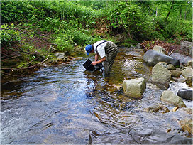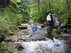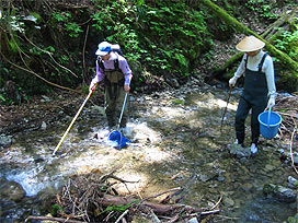 6 ・7 日と渓流で魚類調査を行いました。2 日間で