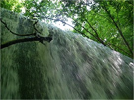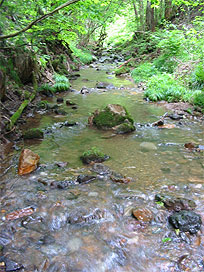 写真は調査区間にあった堰堤を下から撮影したところです。清涼感が伝われば幸いです。