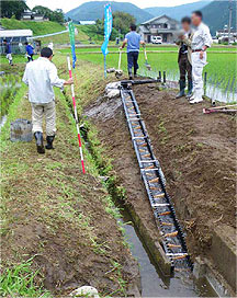 研修では実際に水田魚道の設置を行いました。実践することでマニュアル化できない部分の細かい点が分かり非常に参考になりました。