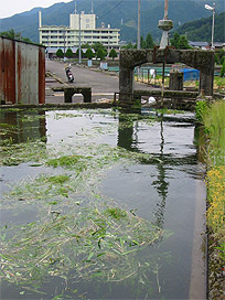 この水路沿いでは、12 日に草刈りが行われました。刈り払われた草が大量に流れてくるため、地元の方々の協力を得て回収にあたりました。ありがとうございました。