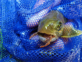 最高のごちそう (?) を捕まえた直後に、今度は自分が捕まってしまい食べることができず・・・。写真を撮った後は元の場所に放流しましたが、さぞや無念だったかもしれません。