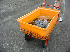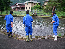 ちなみに今回の放流したアマゴ稚魚の積み込みは、職場体験学習に来ていた下呂市立萩原南中学校の生徒