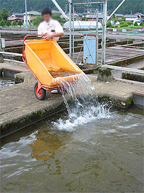 下呂支所では、魚の飼育には井戸水と河川水を使用しています。ただし、井戸の水量に限界があるため、大部分の魚の飼育には河川水を使用しています。