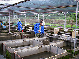 今回は、ふ化仔魚飼育水槽の色、水質のチェック方法などの技術的な話のほか、今後カジカをブランド水産物として