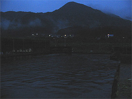 河川水は、飛騨川 (益田川) から水路を使って導入しています。益田川は、このところの雨で増水して流下してくるごみが多く、スクリーンが詰まりやすい状況です。今日は、夜に水路の水位が一時的に低下したため、職員が出動して益田川にある取水場のスクリーンの掃除や水門の点検を行いました。