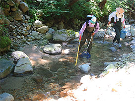 先月 28 ・29 ・30 日の調査に引き続き、同じ渓流の上流側の区間で魚類調査を行いました