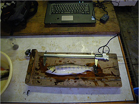 下呂支所でアマゴの試験魚の体サイズ測定を行いました。