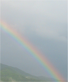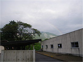 調査の終わりに夕立の雷雨に打たれ下呂支所に戻ってきたら虹が見えました。
