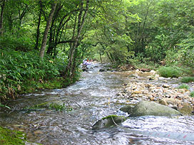 120 m の区間を調査し、アマゴ ・イワナ ・ニジマス