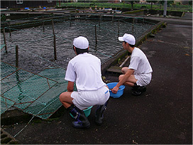 3 日目の最終日は、午前中は飼育魚のニジマスやアマゴに餌を手撒きで与えました。3