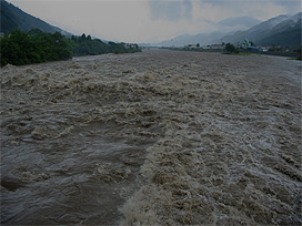 未明からの大雨で下呂支所の飼育用水の水源である飛騨川