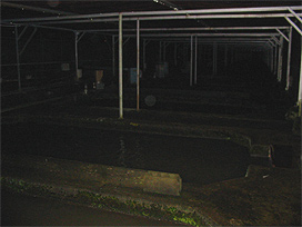 下呂支所では、魚の飼育には井戸水と河川水を使用しています。ただし、井戸の水量に限界があるため、大部分の魚の飼育には河川水を使用しています。