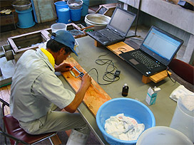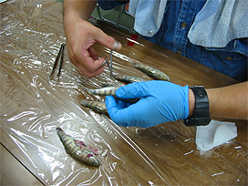 ・細菌 ・ウイルスの有無などを調べて死亡原因を明らかにし、養殖業者に対応策を指導しています。